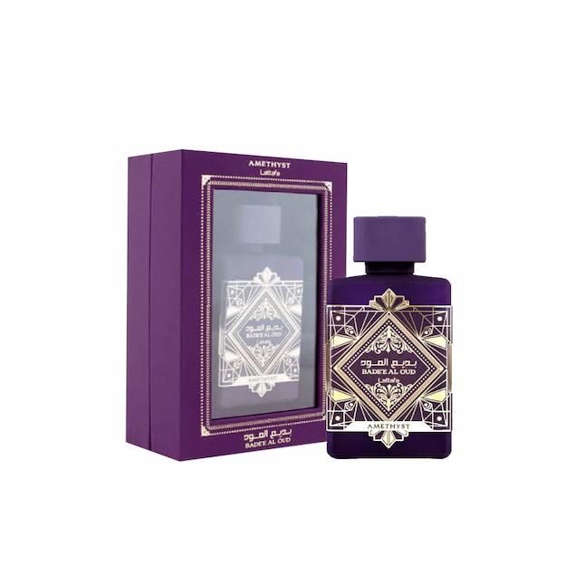 Perfume Oud For Glory Amethyst – Badee Al Oud Amethyst Eau de Parfum by Lattafa Perfumes is a warm fragrance with vanilla, amber and roses.