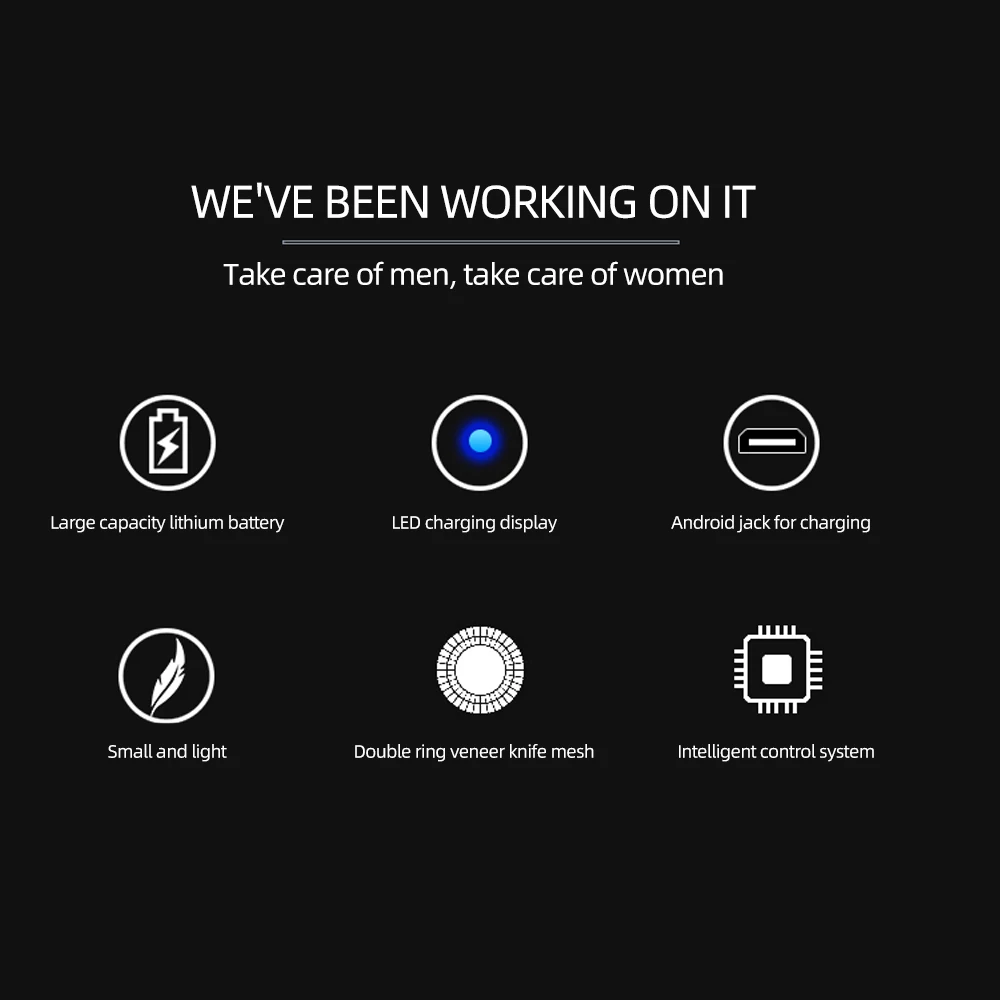 With super powerful battery life, our Feihong mini electric shaver can be used for a whole month after a single charge, and the wireless charging time is 120 minutes.
